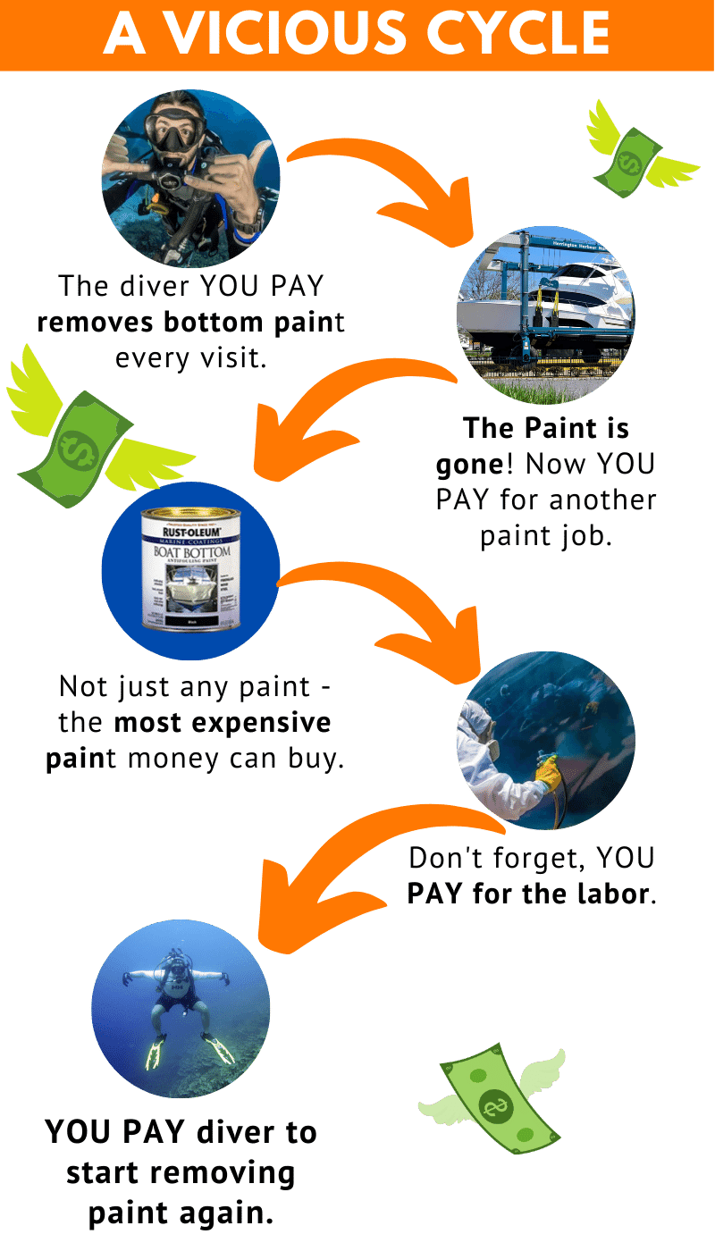 Divers utilize an abrasive process that removes excessive amounts of paint during their monthly cleanings.